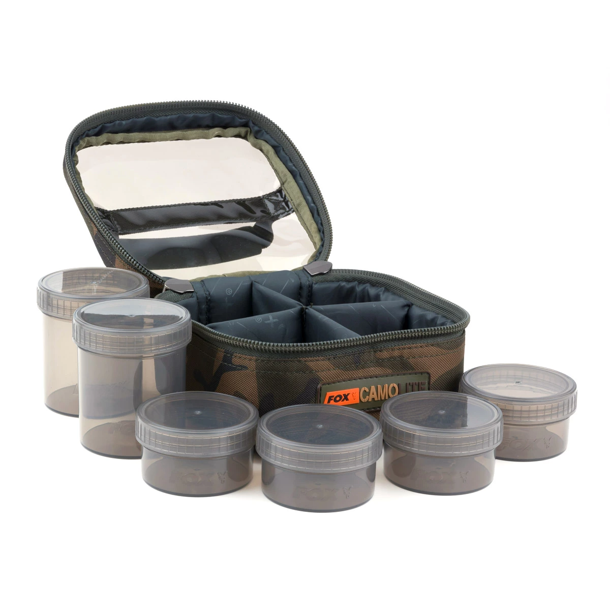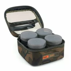 De Camolite Glug 6 Pot Case is voorzien van 6 haakaaspotjes in halve/volledige hoogte, de case heeft het unieke Fox camo patroon en dubbele heavy duty ritsen met gevoerde scheiders om alles overzichtelijk op te bergen.