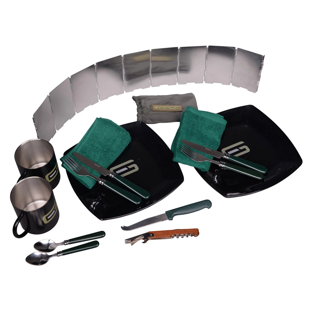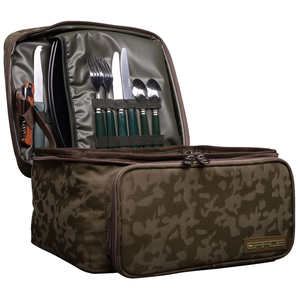 Het Grade development team heeft zich tot doel gesteld om een kooktas te ontwikkelen die ondanks zijn compacte afmetingen toch voldoende ruimte biedt aan alle kookspullen die je nodig hebt tijdens een korte, of langere sessie. Dankzij het modulaire design valt deze perfect te combineren met de diverse Grade Tassen. Tevens is de Cooking Bag volledig voorzien van borden, bestek, mokken en zelfs een windscherm om direct vanuit de tas te kunnen koken.