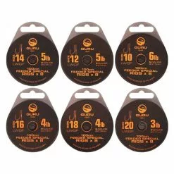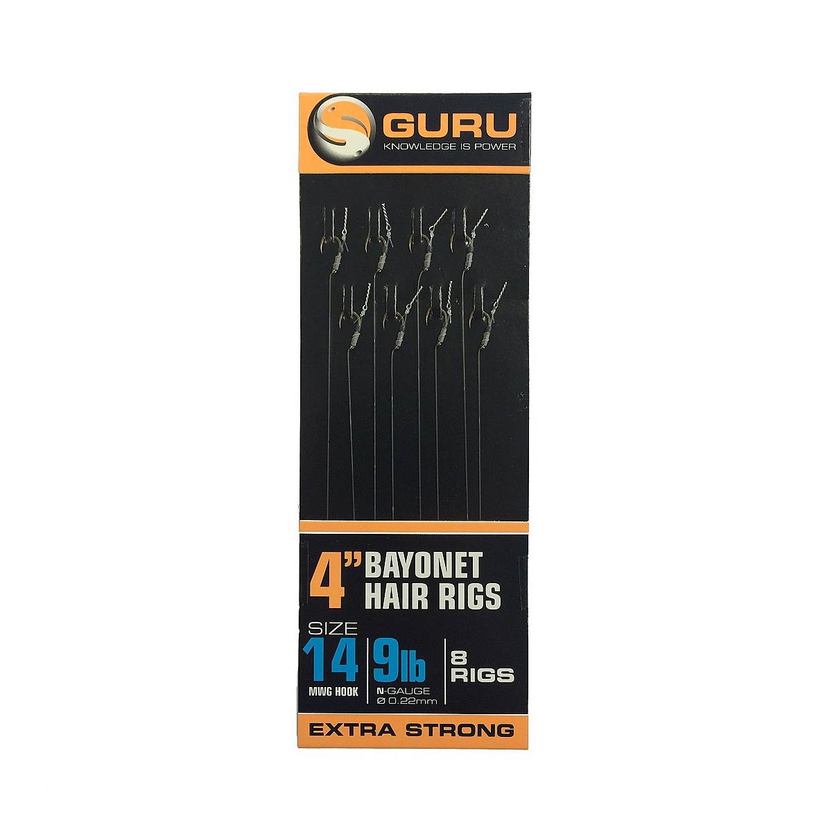 De Guru kant en klare onderlijnen zijn perfect geknoopt en vervaardigd van de hoge kwaliteit Guru materialen. De Guru Bayonets Ready Rig onderlijn is gemaakt van N Gauge onderlijnmateriaal en voorzien van een Guru MWG weerhaakloze haak. Ideaal voor het vissen met de feeder met bijvoorbeeld pellets of mini boilies. De onderlijn is voorzien van een stukje siliconenslang op de haak waarmee de hair is in te stellen. Daarnaast is de Guru Bayonets Ready Rig, zoals de naam al aangeeft, voorzien van een Bayonets die op de hair is bevestigd en het eenvoudig maakt om pellets of boilies op te plaatsen. Leverbaar in een 10cm variant en een 38cm variant.