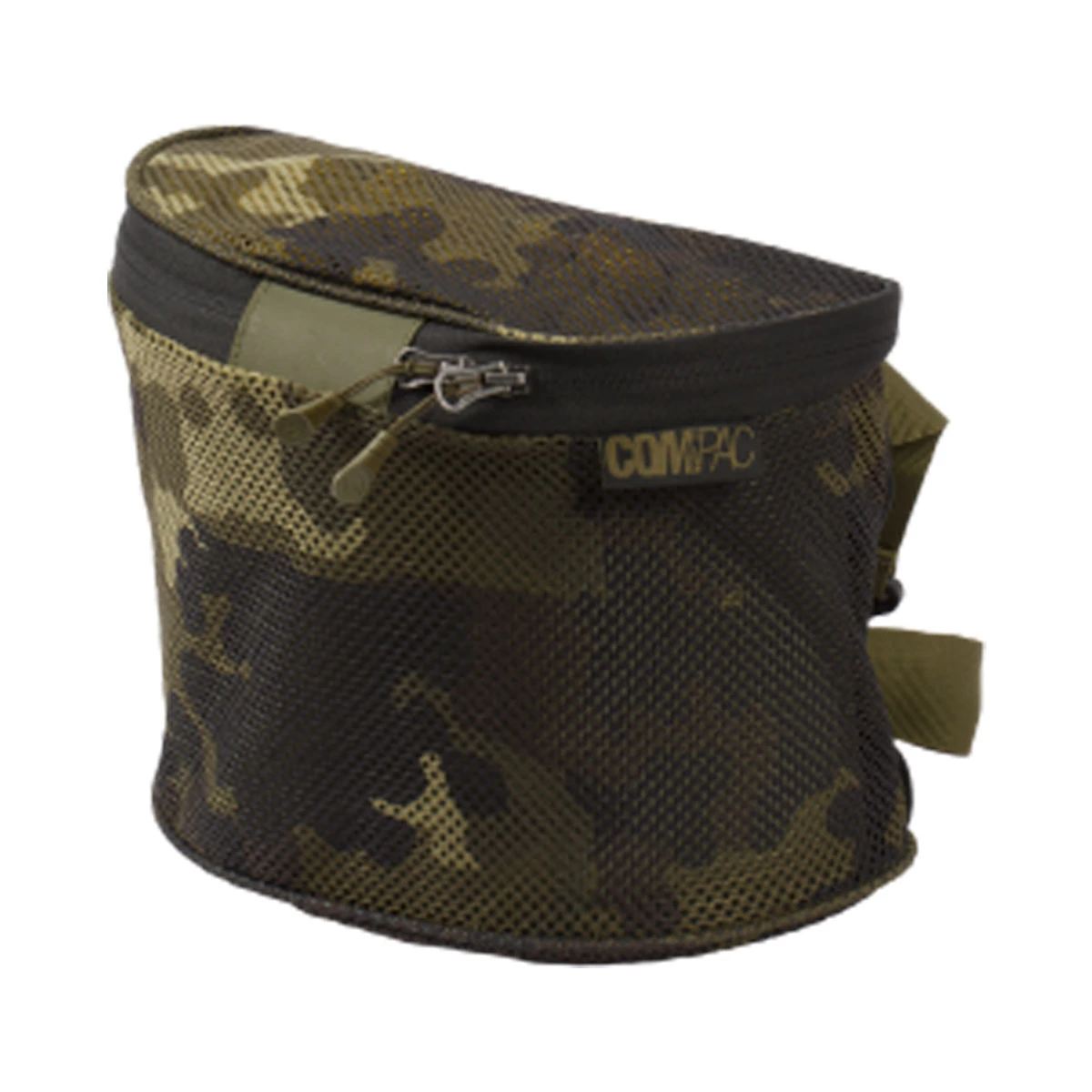 De multifunctionele compac caddy draagt comfortabel tot 3 kg aas en is voorzien van een volledig verstelbare heupband die het aanbrengen van aas met een katapult of werpstok eenvoudig maakt. Gemaakt van een duurzaam camo-gaas, kan de caddy ook worden gebruikt als een luchtdroogzak om boilies langer vers te houden.