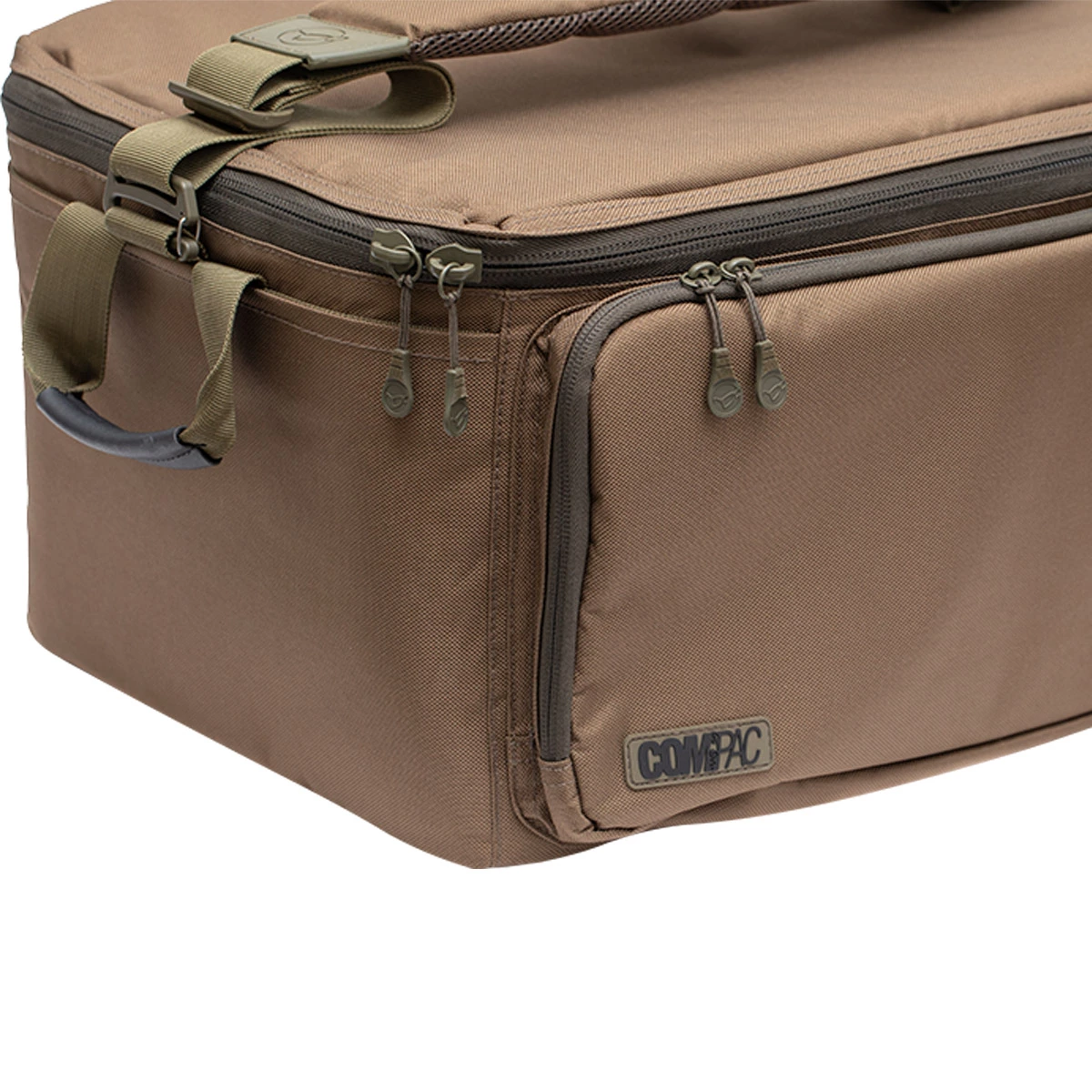 De Korda Compac Cool Bag X-Large is een volledig geïsoleerde tas, deze is ideaal te gebruiken voor het koel houden van je aas. Verder is deze Cool Bag ook prima te gebruiken als koeltas voor een flesje drinken en wat eten. De Tas is voorzien van een groot hoofdvak en nog een extern vak aan de voorzijde. De X-Large variant is geschikt voor het vissen van langere sessies. Voorzien van gevoerde schouderband, geleverd inclusief Korda Cool Packs.