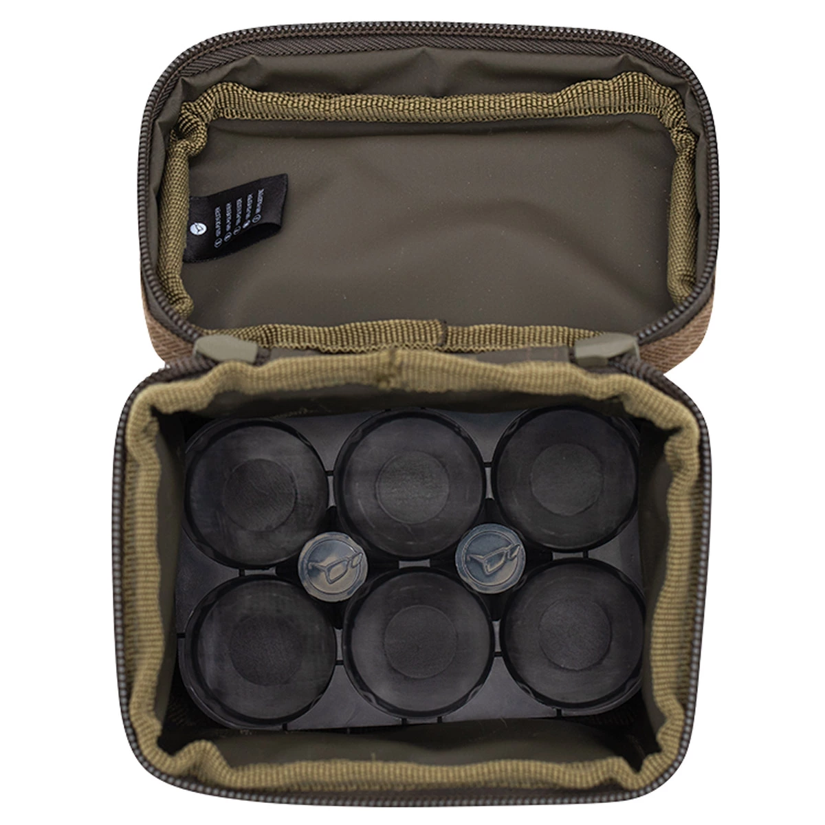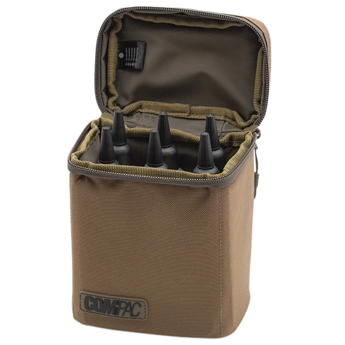 De Korda Compac Goo Bag is een handig tasje, speciaal ontworpen voor het bewaren en vervoeren van de populaire Korda Goo flesjes. Deze Goo Bag heeft een verwijderbaar inzetstuk waar de flesjes precies in passen. Door het inzetstuk blijven de flesjes goed op hun plek, wat ervoor zorgt dat de flesjes niet kunnen gaan lekken of beschadigen. De tas is gemakkelijk schoon te maken en is gemaakt van duurzaam, waterbestendig materiaal. De tas is afgewerkt met heavy duty ritsen en een verstevigd handvat.