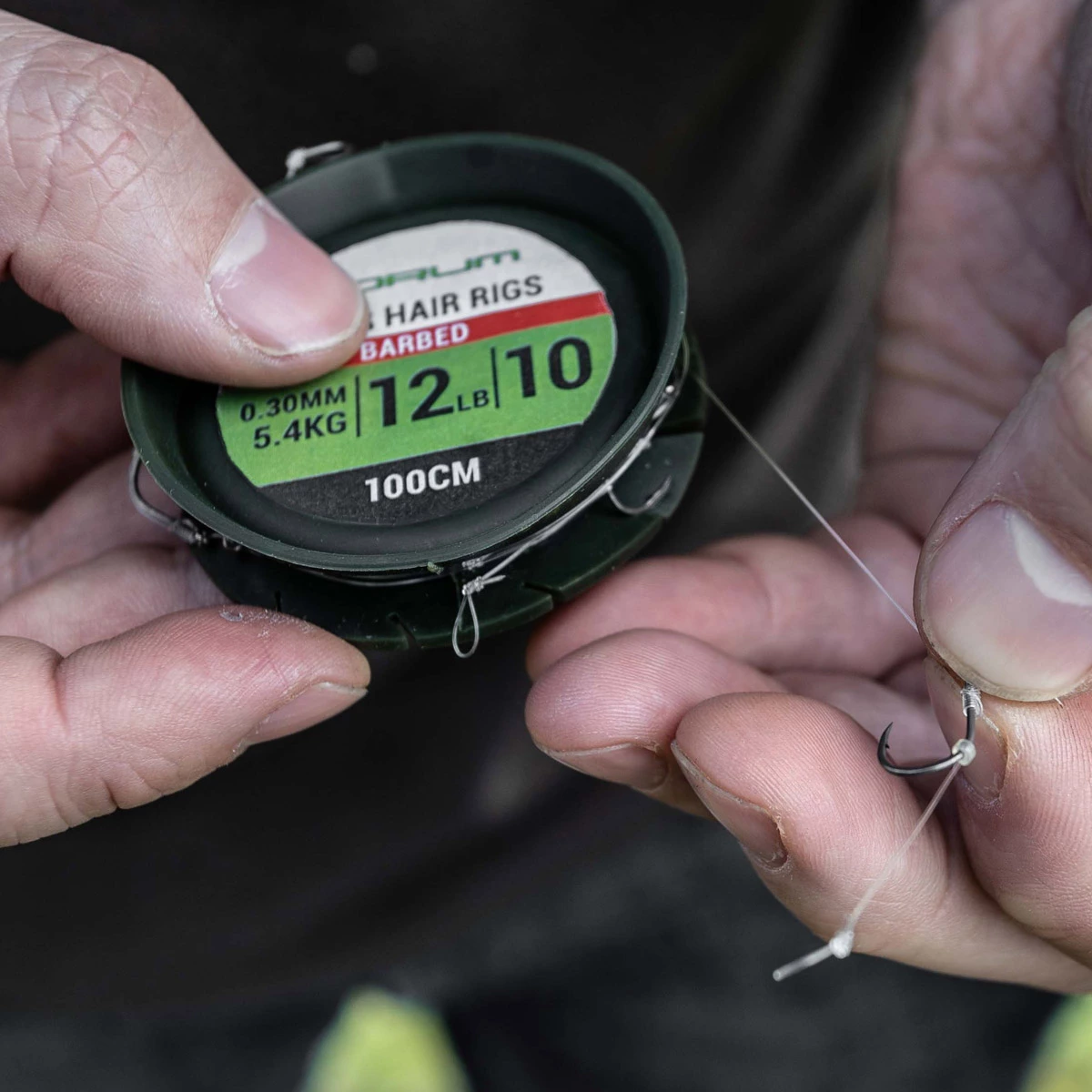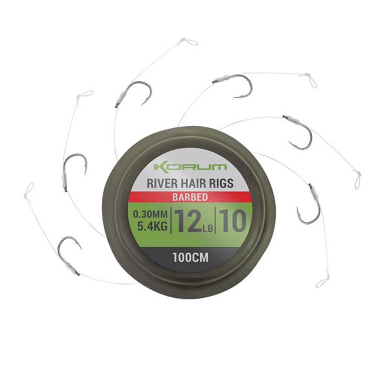 De River Hair Rigs van Korum zijn perfect geschikt voor het feeder vissen op de rivier. De River Hair Rigs zijn voorzien van een siliconen tube op de haaksteel waarmee de lengte van de hair aangepast kan worden. De onderlijnen zitten verpakt op een handig spoeltje.