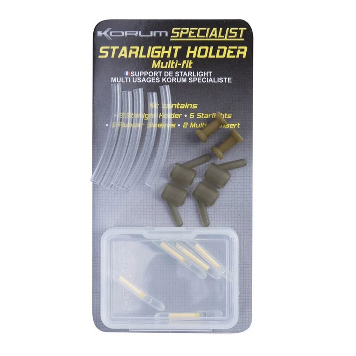 De Starlight Holders van Korum zijn speciaal voor het vissen tijdens de donkere uren gemaakt. Deze handige breekstaafhouders kunnen eenvoudig op de top van uw hengel worden aangebracht, zonder deze te beschadigen. De Starlight Holders worden compleet met breekstaafjes en toebehoren geleverd.